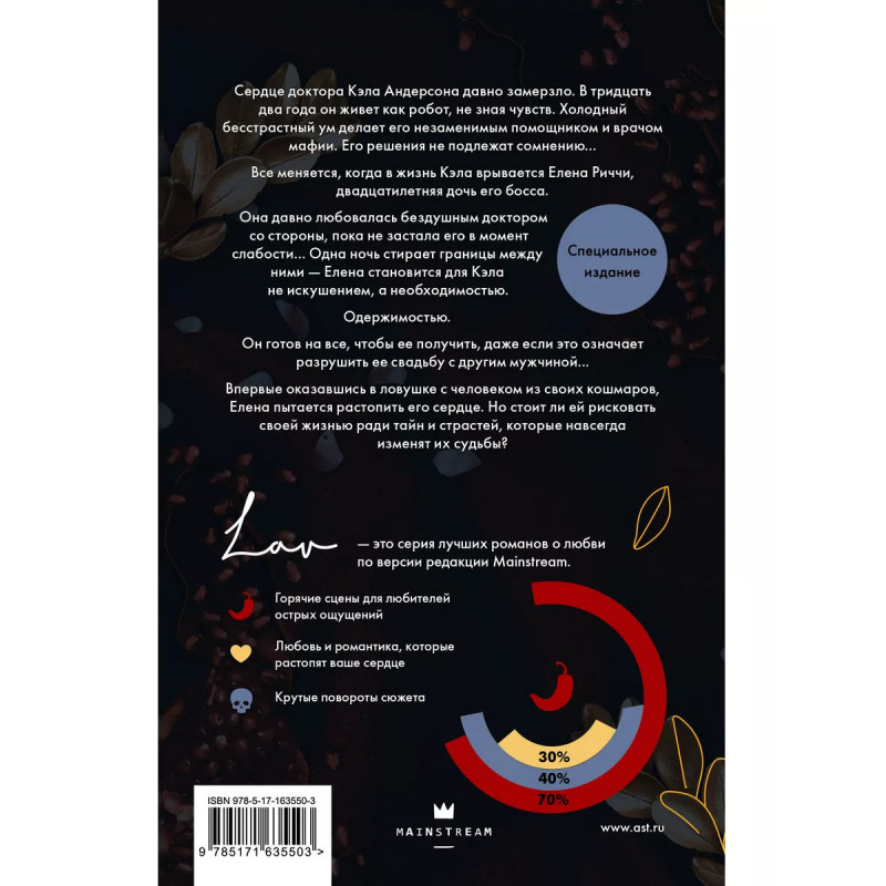 Доктор Кэл Андерсон врач мафии, беспристрастный человек с холодным сердцем. Но все меняется, когда он встречает Елену Риччи дочь своего босса. Одна ночь, и Кэл понимает, что Елена изменила его навсегда. Разбудила. Вернула к жизни. Кэл готов пойти на все, чтобы заполучить девушку даже помешать ее свадьбе с другим