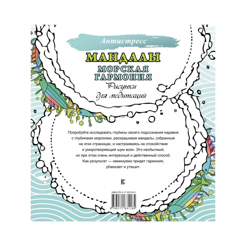 Попробуйте исследовать глубины своего подсознания наравне с глубинами морскими, раскрашивая мандалы, собранные на этих страницах, и настраиваясь на спокойствие и умиротворяющий шум волн. Это необычный, но при этом очень интересный и действенный способ. Как результат неминуемо придет гармония, убаюкает и утешит.