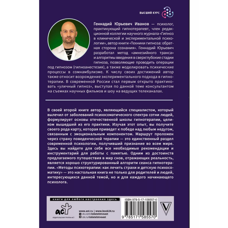 Геннадий Юрьевич Иванов - психолог, практикующий гипнотерапевт, член редакционной коллегии научного журнала Гипноз в клинической и экспериментальной психологии, автор книги Техники гипноза: обратная сторона сознания. Геннадий Юрьевич разработал метод амнезийного транса и алгоритмы введения в сверхглубокие стадии гипноза, позволяющие проводить операции под гипнозом (гипноанестезия), а также моделировать психические процессы в сомнамбулизме. К числу своих достижений автор также относит возрождение экспериментального подхода в гипнотерапии. В современной России стал первым открыто практиковать "уличный гипноз", выступая по данной теме консультантом на съемках научных фильмов и шоу на ведущих телеканалах.