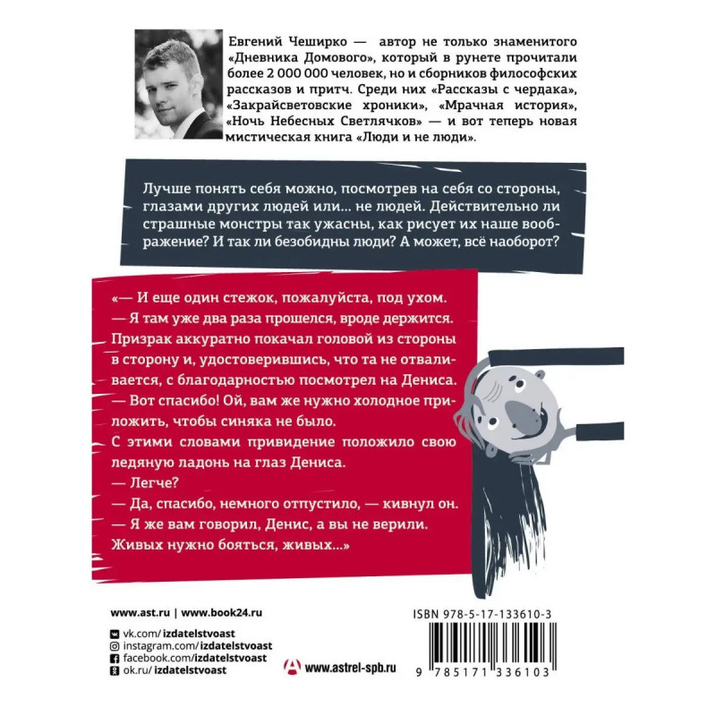 Гостеприимные призраки, одинокие монстры, деликатные привидения, упыри-вегетарианцы, грустные вурдалаки обаятельные чудовища и не только в новой мистической книге Евгения Чеширко. "Лучше понять себя можно, посмотрев на себя со стороны, глазами других людей или... не людей. Действительно ли страшные монстры так ужасны, как рисует их наше воображение? И так ли безобидны люди? А может, всё наоборот?" Е. Чеширко