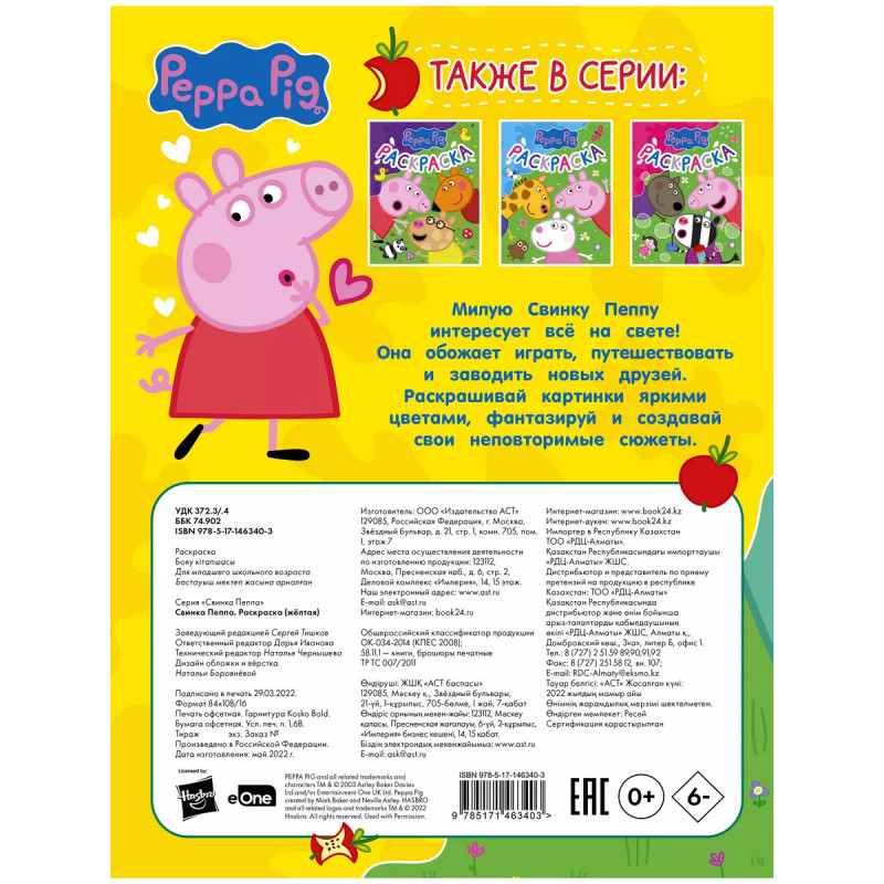 Характеристики Свинка Пеппа. Раскраска (желтая).