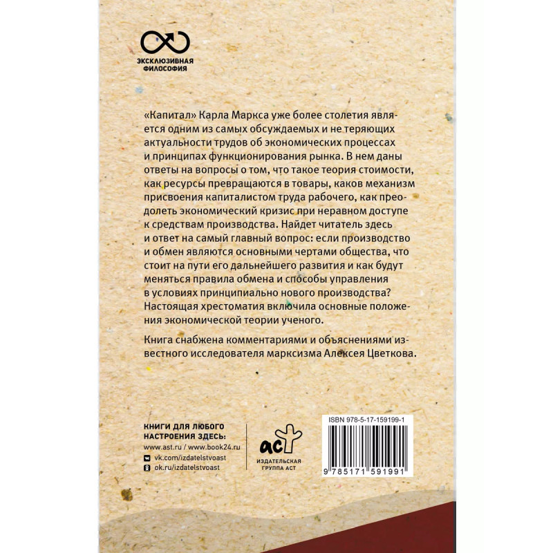 Капитал. С комментариями и иллюстрациями. "Капитал" Карла Маркса уже более столетия является одним из самых обсуждаемых и не теряющих актуальности трудов об экономических процессах и принципах функционирования рынка. В нем даны ответы на вопросы о том, что такое теория стоимости, как ресурсы превращаются в товары, каков механизм присвоения капиталистом труда рабочего, как преодолеть экономический кризис при неравном доступе к средствам производства. Найдет читатель здесь и ответ на самый главный вопрос: если производство и обмен являются основными чертами общества, что стоит на пути его дальнейшего развития и как будут меняться правила обмена и способы управления в условиях принципиально нового производства? Настоящая хрестоматия включила все основные положения экономической теории ученого.
