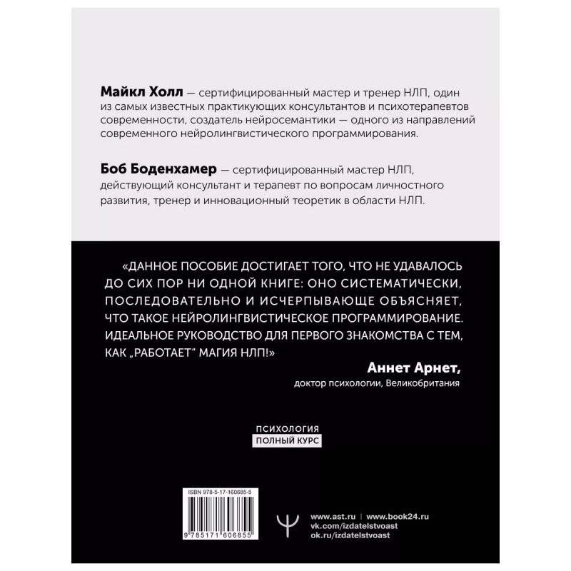 Хотите стать мастером влияния и убедительности? Вы слышали, что НЛП может научить приемам влияния? Но также у вас есть информация, что НЛП это какая-то манипуляция или вообще шарлатанство? Перед вами книга о "настоящем" НЛП. Книга знаменитых психологов, тренеров с многолетним опытом. В ней рассказывается, на каких принципах основано НЛП, почему оно "работает", а также дается курс, пройдя который вы поймете, что НЛП это не "волшебная палочка", а один из самых эффективных и действенных инструментов, которые есть в психологии. В этой книге собрана и хорошо структурирована полная и достоверная информация о нейролингвистическом программировании, от простого к сложному, с объяснением всех терминов, без спекуляций, искажений и "авторских" трактовок. Практические занятия, упражнения и демонстрации, которыми изобилует книга, позволят вам обогатить свой тренерский, управленческий или методический репертуар на основе новейших достижений прикладного НЛП.