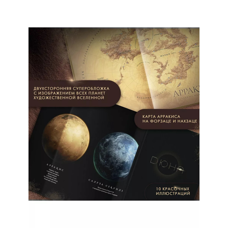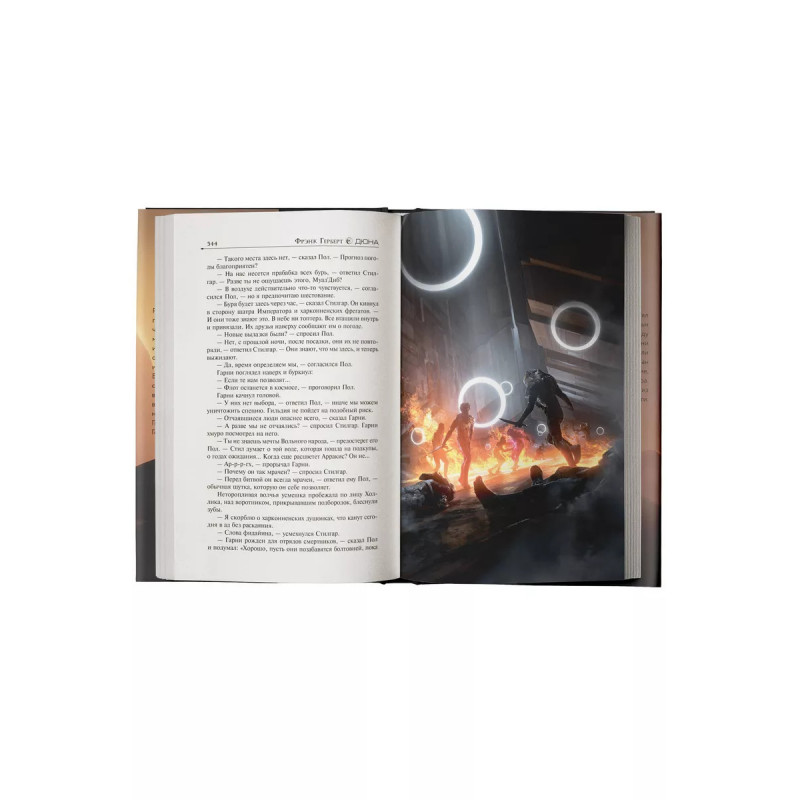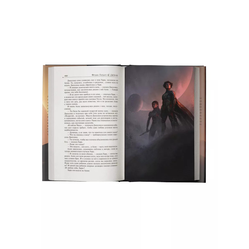 Дюна. Подарочное переиздание культового романа Фрэнка Герберта с цветными иллюстрациями художника Дмитрия Андреева. На пустынной планете Арракис правит Великий дом Харконнен. Владыки дома сильны и самоуверенны, а их амбиции - необузданны и опасны. По воле галактического императора власть над планетой переходит в руки другого аристократического дома - Атрейдесов. Герцог Лето, благородный глава дома, надеется изменить жизнь своих новых подданных к лучшему. Однако Харконнены не намерены так просто уступать контроль над Арракисом, ведь эта пустынная планета - единственное место в галактике, где добывается Пряность, загадочная и могущественная субстанция, без которой немыслимо само существование Империи.