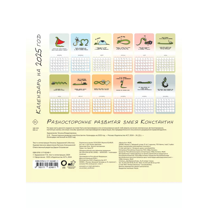 Настенный календарь на 2025 год с иллюстрациями Татьяны Задорожней fevrony.