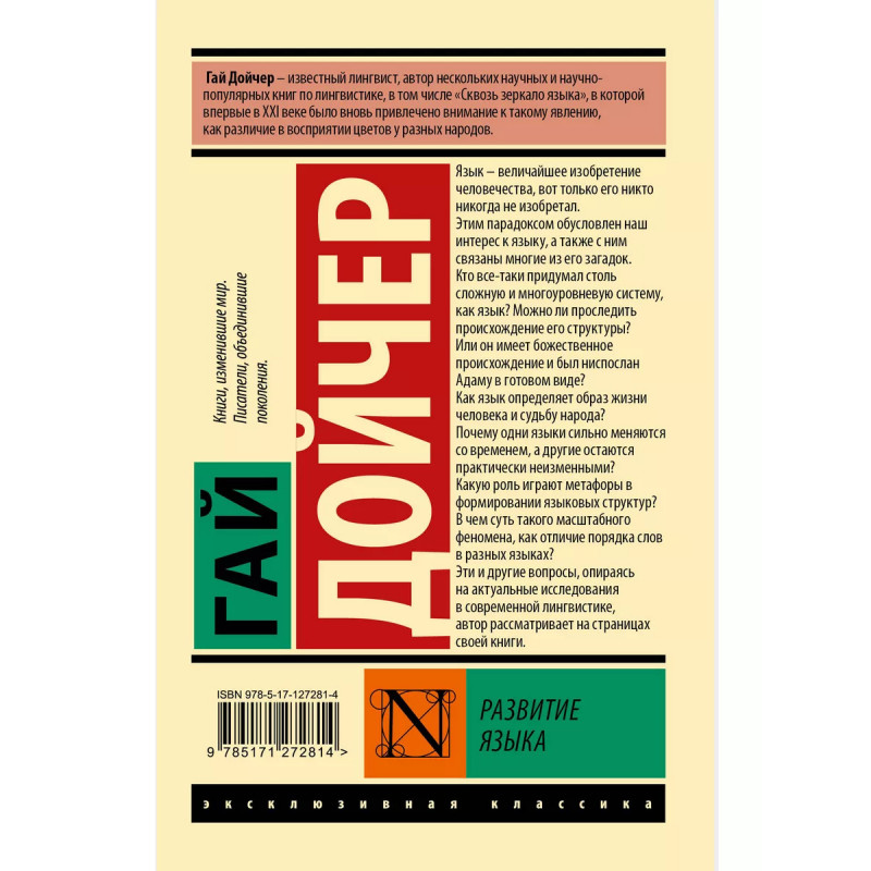 В своей книге Развитие языка известный лингвист и автор бестселлера Сквозь зеркало языка Гай Дойчер пытается отследить возникновение, развитие и эволюцию языка величайшего изобретения человечества, которое никто и никогда не изобретал. Из этой книги вы узнаете ответы на следующие вопросы: Кто и когда придумал столь сложную и многоуровневую структуру как язык? Можно ли проследить происхождение структуры языка? Правда ли он имеет божественное происхождение? Почему одни языки неузнаваемо меняются со временем, а другие остаются практически неизменными?