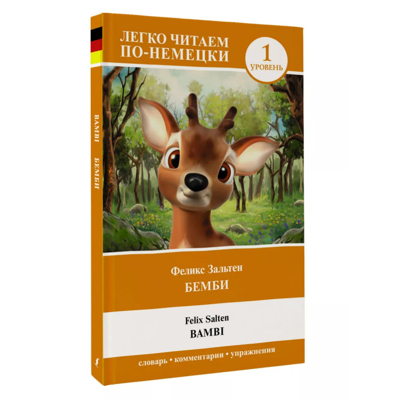 Бемби. Уровень 1 Bambi. Трогательная и поучительная повесть "Бемби" - самое знаменитое произведение австрийского писателя Феликса Зальтена, полюбившееся читателям во всем мире. История повествует о жизни олененка Бемби, о его взрослении и превращении из пугливого малыша в величественного короля леса. Наполненный темами любви, дружбы и защиты природы этот рассказ никого не оставит равнодушным. Текст произведения адаптирован для уровней A1-A2 (для начинающих изучать немецкий язык) и снабжен комментариями. После повести предлагаются упражнения с ключами. В конце книги - словарь используемой лексики, облегчающий чтение.