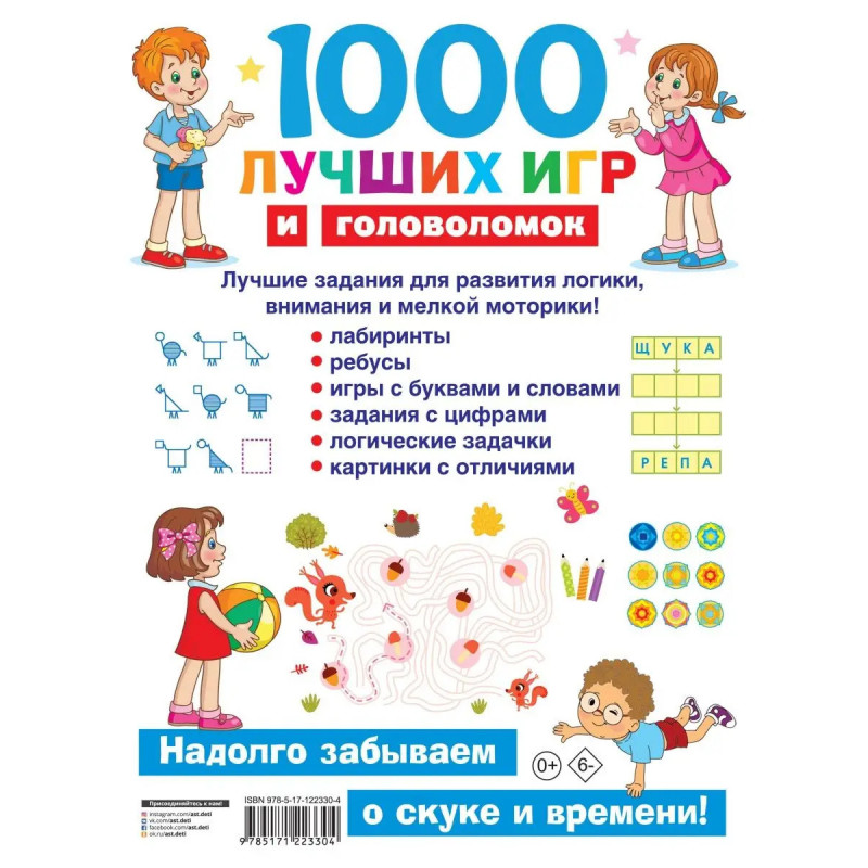 О чём эта книга 1 лучших игр и головоломок это сборник развивающих заданий для дошколят. На страницах книги малыши найдут множество головоломок на любой вкус: ребусов и кроссвордов, игр с буквами и словами, лабиринтов и задачек на логику. Увлекательные задания помогут ребятам развить умственные способности, потренировать память и просто весело провести свободное время. Кому эта книга будет интересна Сборник заданий для детей дошкольного возраста. Каковы особенности этой книги Решение головоломок приятное и полезное времяпровождение. В книге представлены задания разного уровня сложности. Большой формат и красочные иллюстрации.
