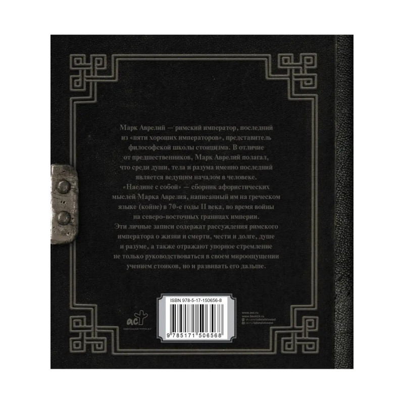 Марк Аврелий - римский император и стоик, чье правление пришлось на золотой век Римской империи, а его самого называли философом на троне. Наедине с собой собрание мыслей Марка Аврелия, созданное в конце II века н. э. Эти записи содержат рассуждения римского императора о духе, долге и совести, а также отражает его упорное стремление не только руководствоваться в своем мироощущении идеями стоицизма, но и развивать его для будущих поколений.