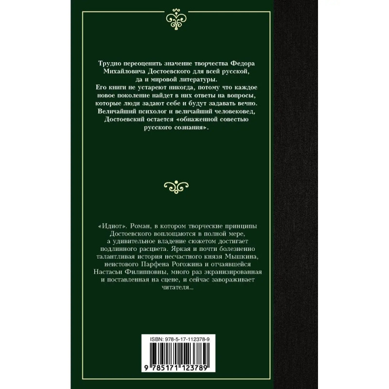 "Идиот". Роман, в котором творческие принципы Достоевского воплощаются в полной мере, а удивительное владение сюжетом достигает подлинного расцвета. Яркая и почти болезненно талантливая история несчастного князя Мышкина, неистового Парфена Рогожина и отчаявшейся Настасьи Филип-повны, много раз экранизированная и поставленная на сцене, и сейчас завораживает читателя
