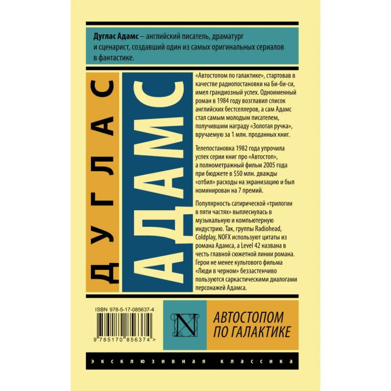 "Автостопом по Галактике", стартовав в качестве радиопостановки на Би-би-си, имел грандиозный успех. Одноименный роман в 1984 году возглавил список английских бестселлеров, а сам Адамс стал самым молодым писателем, получившим награду "Золотая ручка", вручаемую за 1 млн. проданных книг. Телепостановка 1982 года упрочила успех серии книг про "Автостоп", а полнометражный фильм 25 года при бюджете в $5 млн. дважды "отбил" расходы на экранизацию и был номинирован на 7 премий. Популярность сатирической "трилогии в пяти частях" выплеснулась в музыкальную и компьютерную индустрию. Так, группы Radiohead, Coldplay, NOFX используют цитаты из романа Адамса, а Level 42 названа в честь главной сюжетной линии романа. Герои не менее культового фильма "Люди в черном" беззастенчиво пользуются саркастическими диалогами персонажей Адамса.