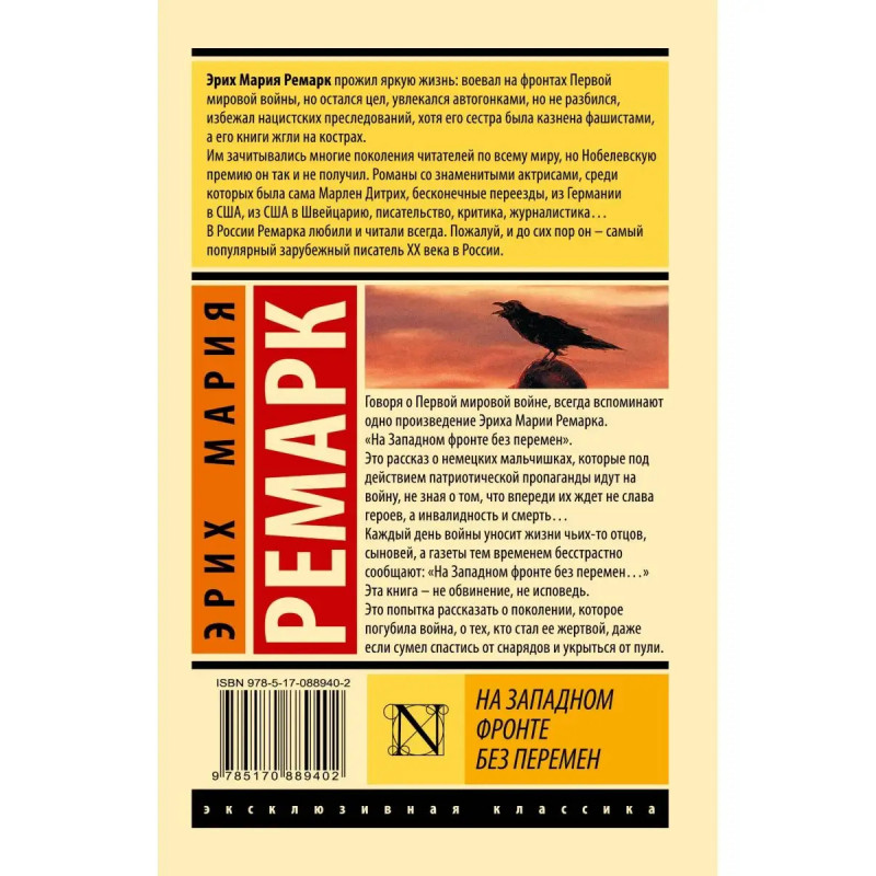 Говоря о Первой мировой войне, всегда вспоминают одно произведение Эриха Марии Ремарка. "На Западном фронте без перемен". Это рассказ о немецких мальчишках, которые под действием патриотической пропаганды идут на войну, не зная о том, что впереди их ждет не слава героев, а инвалидность и смерть Каждый день войны уносит жизни чьих-то отцов, сыновей, а газеты тем временем бесстрастно сообщают: "На Западном фронте без перемен...". Эта книга не обвинение, не исповедь. Это попытка рассказать о поколении, которое погубила война, о тех, кто стал ее жертвой, даже если сумел спастись от снарядов и укрыться от пули.