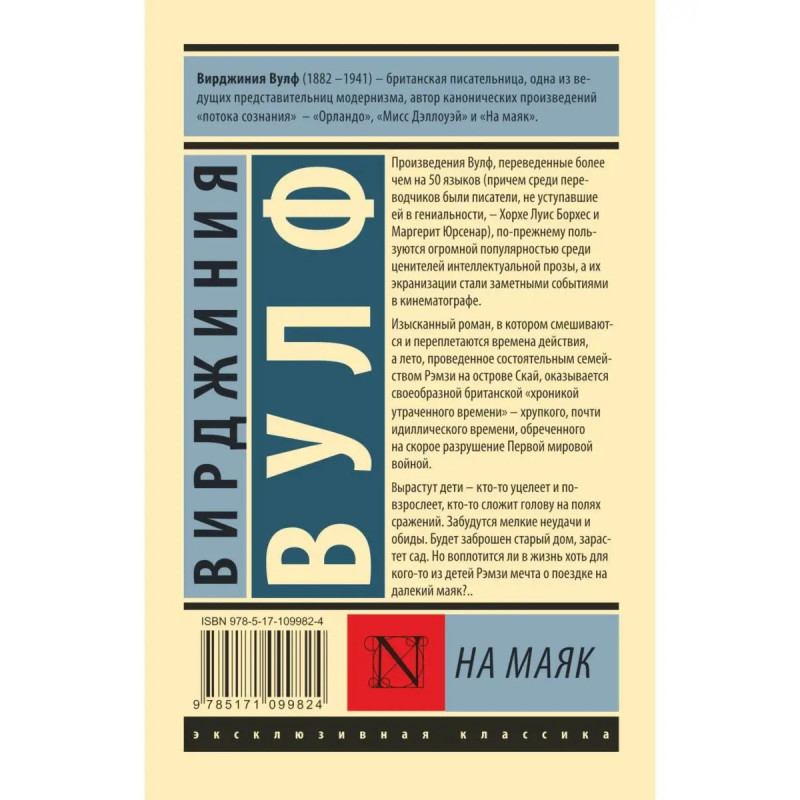 Изысканный роман, в котором смешиваются и переплетаются времена действия, а лето, проведенное состоятельным семейством Рэмзи на острове Скай, оказывается своеобразной британской "хроникой утраченного времени" хрупкого, почти идиллического времени, обреченного на скорое разрушение Первой мировой войной. Вырастут дети кто-то уцелеет и повзрослеет, кто-то сложит голову на полях сражений. Забудутся мелкие неудачи и обиды. Будет заброшен старый дом, зарастет сад. Но воплотится ли в жизнь хоть для кого-то из детей Рэмзи мечта о поездке на далекий маяк?..