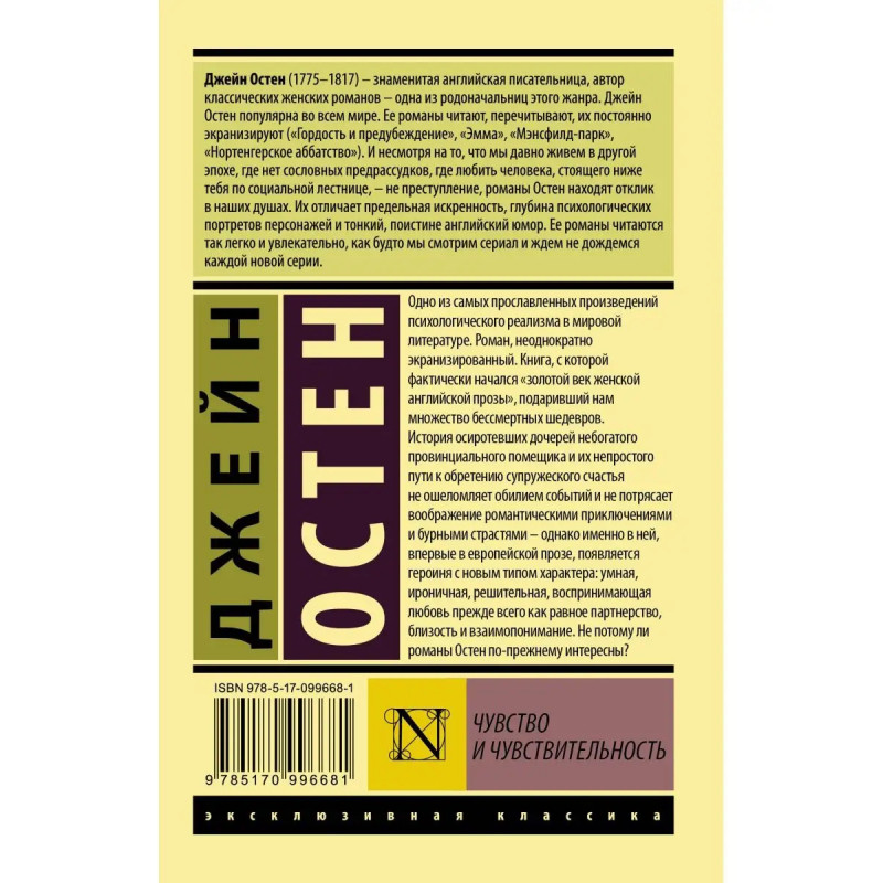 Одно из самых прославленных произведений психологического реализма в мировой литературе. Роман, неоднократно экранизированный. Книга, с которой фактически начался "золотой век женской английской прозы", подаривший нам множество бессмертных шедевров. История осиротевших дочерей небогатого провинциального помещика и их непростого пути к обретению супружеского счастья не ошеломляет обилием событий и не потрясает воображение романтическими приключениями и бурными страстями однако именно в ней, впервые в европейской прозе, появляется героиня с новым типом характера: умная, ироничная, решительная, воспринимающая любовь прежде всего как равное партнерство, близость и взаимопонимание. Не потому ли романы Остен по-прежнему интересны?