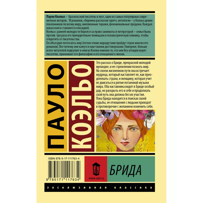 Брида. Эта книга - удивительная и правдивая история молодой Бриды ОФерн, будущей наставницы Традиции Луны. В основе романа - излюбленная для Коэльо идея поиска себя, своей цели в жизни. Коэльо устами своих героев рассуждает о вере и религии, колдовстве и магии и, конечно, о любви. В этой истории, рассказанной просто и радостно, волшебство говорит языком человеческого сердца.