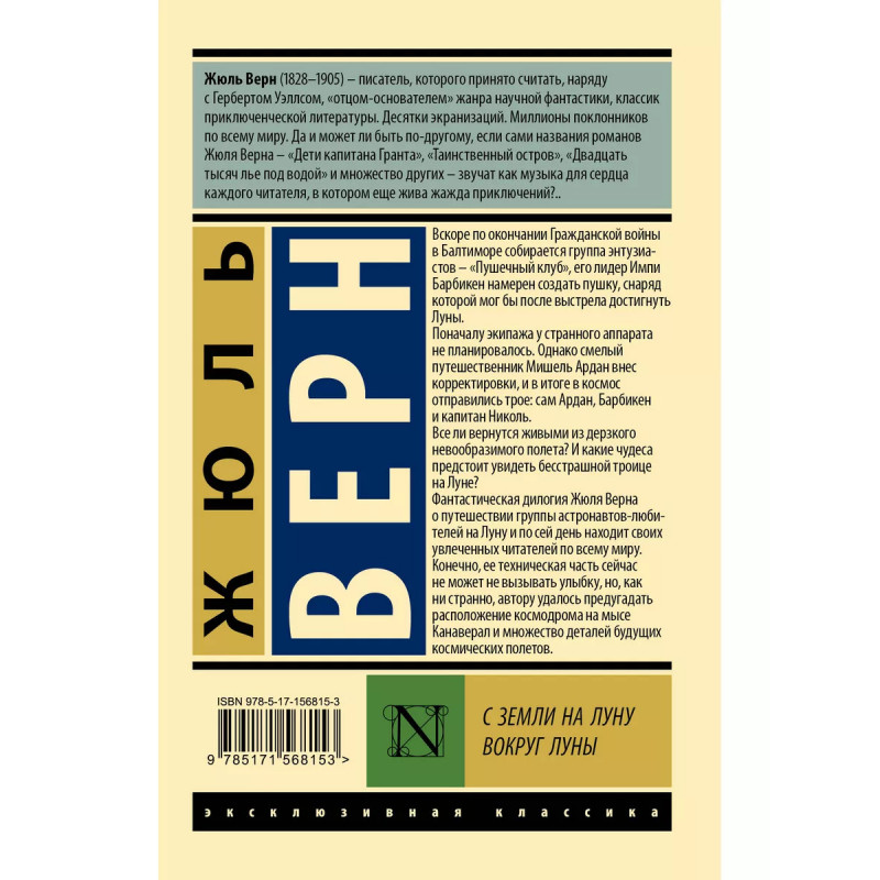 С Земли на Луну. Вокруг Луны. Вскоре по окончании Гражданской войны в Балтиморе собирается группа энтузиастов - "Пушечный клуб", его лидер Импи Барбикен намерен создать пушку, снаряд которой мог бы после выстрела достигнуть Луны. Поначалу экипажа у странного аппарата не планировалось. Однако смелый путешественник Мишель Ардан внес корректировки, и в итоге в космос отправились трое: сам Ардан, Барбикен и капитан Николь. Все ли вернутся живыми из дерзкого невообразимого полета? И какие чудеса предстоит увидеть бесстрашной троице на Луне? Фантастическая дилогия Жюля Верна о путешествии группы астронавтов-любителей на Луну и по сей день находит своих увлеченных читателей по всему миру. Конечно, ее техническая часть сейчас не может не вызывать улыбку, но, как ни странно, автору удалось предугадать расположение космодрома на мысе Канаверал и множество деталей будущих космических полетов.