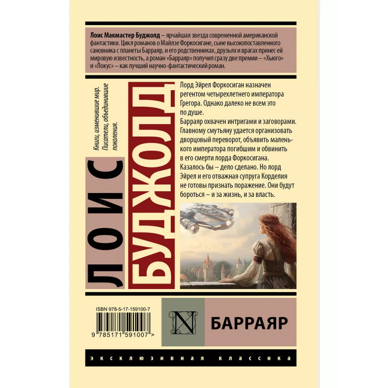 Барраяр. Лоис Макмастер Буджолд - ярчайшая звезда современной американской фантастики. Цикл романов о Майлзе Форкосигане, сыне высокопоставленного сановника с планеты Барраяр, и его родственниках, друзьях и врагах принес ей мировую известность, а роман "Барраяр" получил сразу две премии -- "Хьюго" и "Локус" -- как лучший научно-фантастический роман. Лорд Эйрел Форкосиган назначен регентом четырехлетнего императора Грегора. Однако далеко не всем это по душе. Барраяр охвачен интригами и заговорами. Главному смутьяну удается организовать дворцовый переворот, объявить маленького императора погибшим и обвинить в его смерти лорда Форкосигана. Казалось бы - дело сделано. Но лорд Эйрел и его отважная супруга Корделия не готовы признать поражение. Они будут бороться - и за жизнь, и за власть.