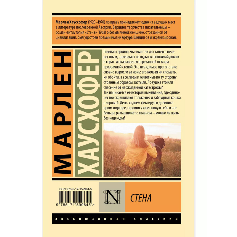 Стена. "Стена" - один из самых известных романов австрийской писательницы Марлен Хаусхофер. Книга стала бестселлером по версии немецкого журнала Der Spiegel, завоевала престижную австрийскую премию Артура Шницлера и оказалась переведена на 19 языков. "Стена" - любопытный психологический эксперимент над человеческой психикой в условиях полной изоляции.