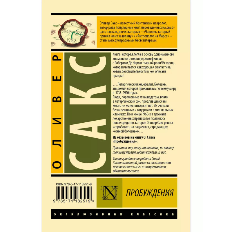 Книга, которая легла в основу знаменитого одноименного голливудского фильма с Робертом Де Ниро в главной роли! История, которая читается как хорошая фантастика хотя в действительности в ней описана правда! Летаргический энцефалит. Болезнь, эпидемия которой прокатилась по всему миру в 19181920 годах. Десятки людей впали в летаргический сон, продлившийся ни много ни мало пятьдесят лет. Их считали безнадежными и содержали в специальных клиниках. Но когда в начале 1970-х на рынок лекарственных препаратов вышло новое лекарство, предназначенное для борьбы с болезнью Паркинсона, молодой врач Оливер Сакс попытался испробовать его на пациентах, страдающих "сонной болезнью". Он шел на риск и верил в чудо