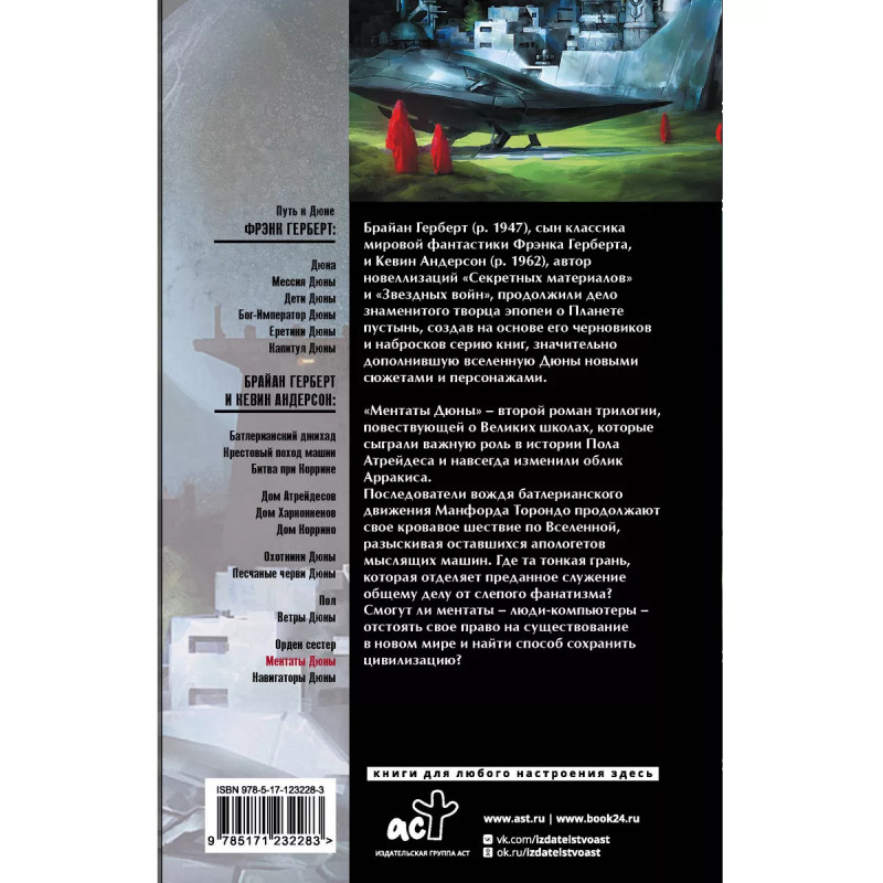 "Ментаты Дюны" второй роман трилогии, повествующей о Великих школах, которые сыграли важную роль в истории Пола Атрейдеса и навсегда изменили облик Арракиса. Последователи вождя батлерианского движения Манфорда Торондо продолжают свое кровавое шествие по Вселенной, разыскивая оставшихся апологетов мыслящих машин. Где та тонкая грань, которая отделяет преданное служение общему делу от слепого фанатизма? Смогут ли ментаты люди-компьютеры отстоять свое право на существование в новом мире и найти способ сохранить цивилизацию?