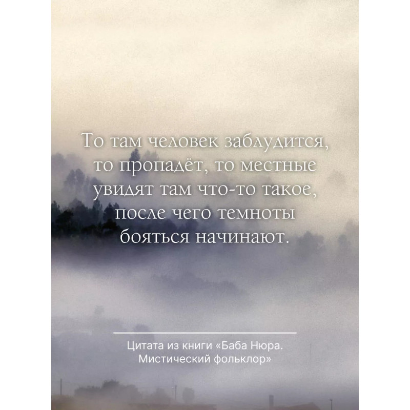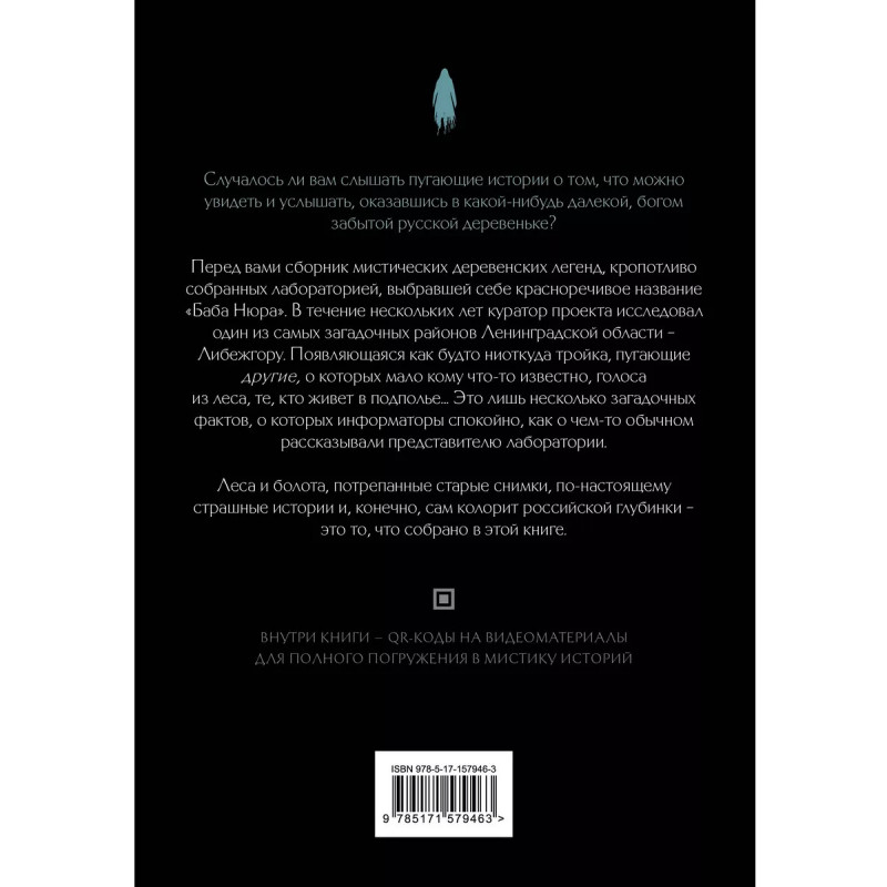 Случалось ли вам слышать пугающие истории о том, что можно увидеть и услышать, оказавшись в какой-нибудь далекой, богом забытой русской деревеньке? Перед вами сборник мистических деревенских легенд, кропотливо собранных лабораторией, выбравшей себе красноречивое название "Баба Нюра". В течение нескольких лет куратор проекта исследовал один из самых загадочных районов Ленинградской области Либежгору. Появляющаяся как будто ниоткуда тройка, пугающие другие, о которых мало кому что-то известно, голоса из леса, те, кто живет в подполье Это лишь несколько загадочных фактов, о которых информаторы спокойно, как о чем-то обычном рассказывали представителю лаборатории. Леса и болота, потрепанные старые снимки, по-настоящему страшные истории и, конечно, сам колорит российской глубинки это то, что собрано в этой книге.