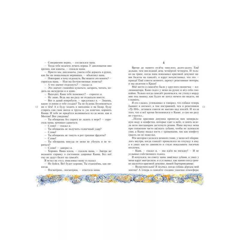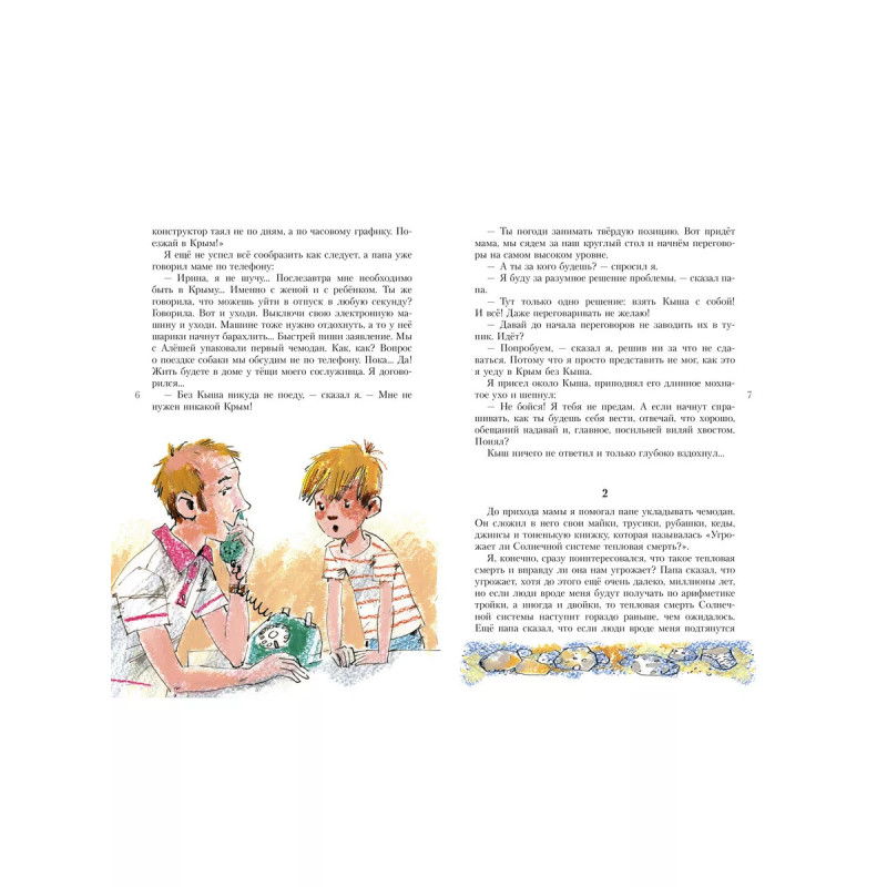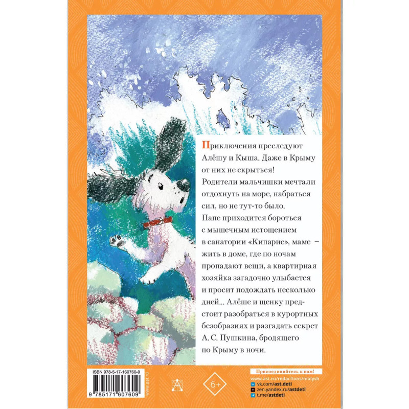 Кыш и я в Крыму. Приключения преследуют Алёшу и Кыша. Даже в Крыму от них не скрыться! Родители мальчишки мечтали отдохнуть на море, набраться сил, но не тут-то было. Папе приходится бороться с мышечным истощением в санатории "Кипарис", маме жить в доме, где по ночам пропадают вещи, а квартирная хозяйка загадочно улыбается и просит подождать несколько дней Алёше и щенку предстоит разобраться в курортных безобразиях и разгадать секрет А. С. Пушкина, бродящего по Крыму в ночи.