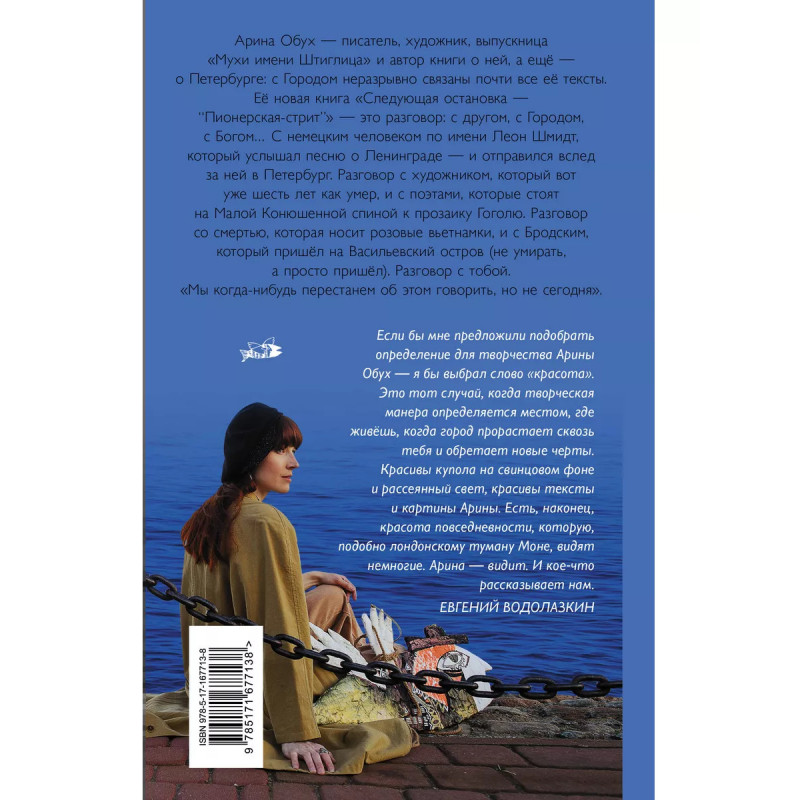 Книга выходит в серии Петербург и его обитатели. Автор и его герои одной крови с городом навсегда непостижимым, изменчивым, противоречивым, дождливым и прекрасным. Арина Обух молодой писатель и художник, яркий представитель нового поколения, которое сегодня пришло в литературу. Её проза переведена на испанский, турецкий, болгарский, словацкий и китайский языки. Книгу украшают авторские иллюстрации. Прозу автора отличает индивидуальность стиля и особая интонация. В этой книге необыкновенно образный язык, тонкая ирония и самоирония. Петербург Арины Обух не канонически мрачный и угрюмый. В нём богатая палитра красок и чувств, он молод ему всего 321 год!..