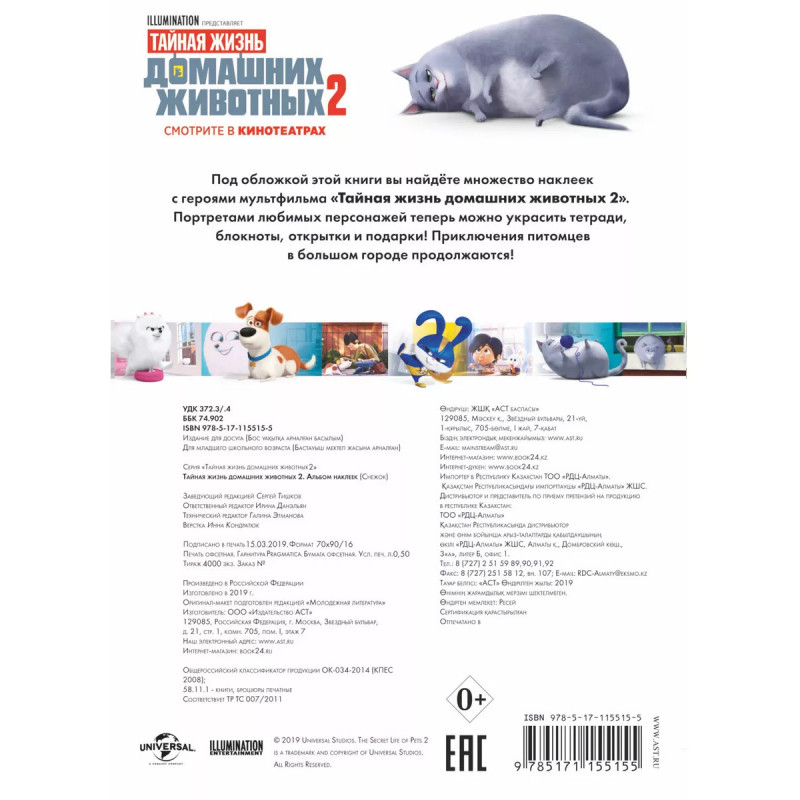 Характеристики Тайная жизнь домашних животных 2. Альбом наклеек (Снежок).