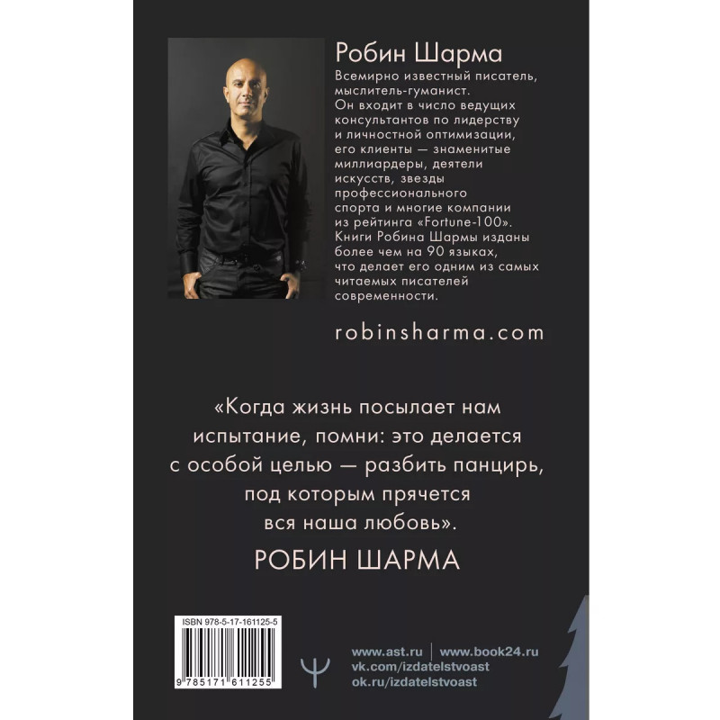 Долгожданное новое издание бестселлера Робина Шармы одного из самых знаменитых учителей современности в области личной эффективности. Эта книга ключ к лучшей жизни, счастью, процветанию и внутреннему покою, которых вы заслуживаете. Объединив восточную мудрость с западными принципами успеха, в этом вдохновляющем, но очень практичном руководстве Робин Шарма предлагает план захватывающей, изобильной жизни, богатой радостью и достижениями. В свойственной ему увлекательной манере повествования Робин Шарма рассказывает историю Дара Сандерсена, менеджера средних лет с хорошей работой, красивым домом и стабильным доходом. Несмотря на свой внешне очевидный успех, Дар не удовлетворен жизнью. После встречи с Монахом он отправляется в большое путешествие, чтобы открыть свое предназначение. Эта книга раскрывает вселенские законы. Она ваш путеводитель по внутреннему миру, проводник к подлинному величию.
