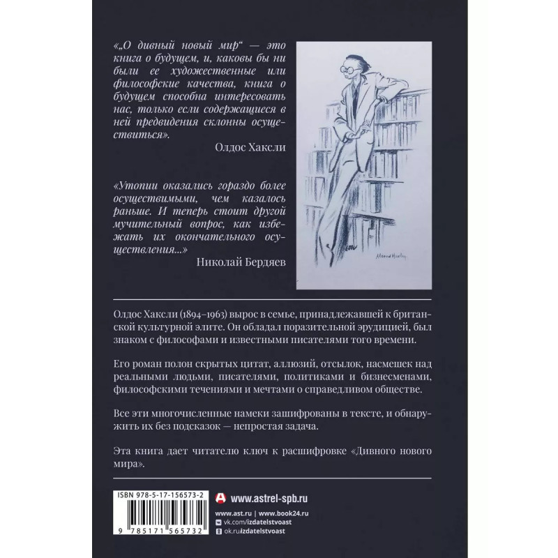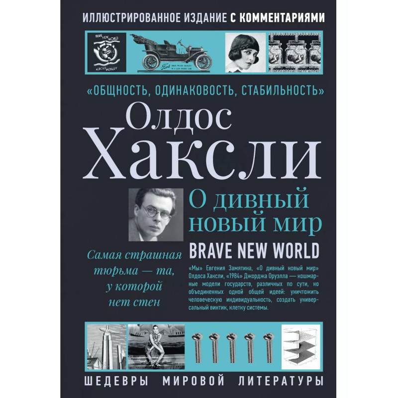 Олдос Хаксли вырос в семье, принадлежавшей к британской культурной элите. Он обладал поразительной эрудицией, свободно говорил на французском и немецком, был знаком с философами и известными писателями того времени. Его роман полон скрытых цитат, аллюзий, отсылок, насмешек над реальными людьми, писателями, политиками и бизнесменами, философскими течениями и мечтами о справедливом обществе. Все эти насмешки зашифрованы в тексте, и обнаружить их без подсказок непростая задача. Большинство не заметит их, а значит, потеряет половину удовольствия от чтения романа. Эта книга дает читателю ключ к расшифровке "Дивного нового мира". Практически все имена и фамилии в романе "говорящие", а их сочетание оригинальный сатирический прием автора. Не случайно выбраны и географические названия, а цитат из Шекспира в тексте более сорока. И не только цитаты в романе фактически зашифрована вся пьеса Шекспира "Буря".