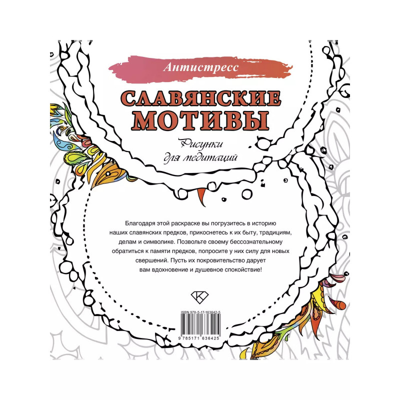 Благодаря этой раскраске вы погрузитесь в историю наших славянских предков, прикоснетесь к их быту, традициям, делам и символике. Позвольте своему бессознательному обратиться к памяти предков, попросите у них силу для новых свершений. Пусть их покровительство дарует вам вдохновение и душевное спокойствие!