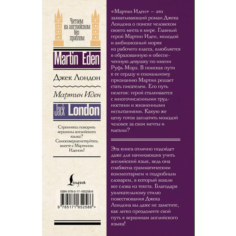 "Мартин Иден" один из самых известных романов Джека Лондона. Эта книга о силе любви, личности и воле. Главный герой Мартин Иден, обычный парень из простой семьи и бывший моряк, влюбляется в девушку из богатой семьи. Осознавая, насколько они разные, молодой человек принимает решение измениться и стать благороднее, лучше и умнее. Стремление добиться любимой не только меняет Мартина как человека, но и приводит его к переосмыслению своих ценностей и желаний... Текст произведения адаптирован и сопровождается грамматическим комментарием и словарем, который содержит все слова, встречающиеся в произведении. Таким образом, книга подойдет читателям с любым уровнем владения английским языком.