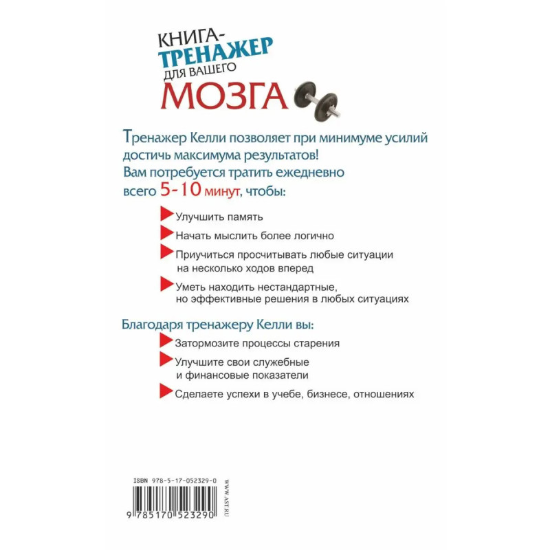 Книга представляет сенсационный тренажер головного мозга, созданный Патриком Келли. Осуществляя ежедневную "интеллектуальную гимнастику" (решая несложные задачки, запоминая слова), мы тренируем особые зоны мозга, ответственные за память и креативность (то есть за творчество, изобретательность, нестандартность). В результате таких тренировок увеличиваются показатели интеллекта, мышление становится острее и глубже, у занимающегося, открываются новые способности! Тысячи последователей Келли во всем мире обеспечили себе карьерный рост, успехи в бизнесе, общее благополучие, начав заниматься с тренажером. Теперь такая возможность появилась и у россиян! Все, что от вас понадобится, несколько недель ежедневно тратить 51 минут на простенькие упражнения. Начните заниматься сегодня, и результаты последуют уже завтра!