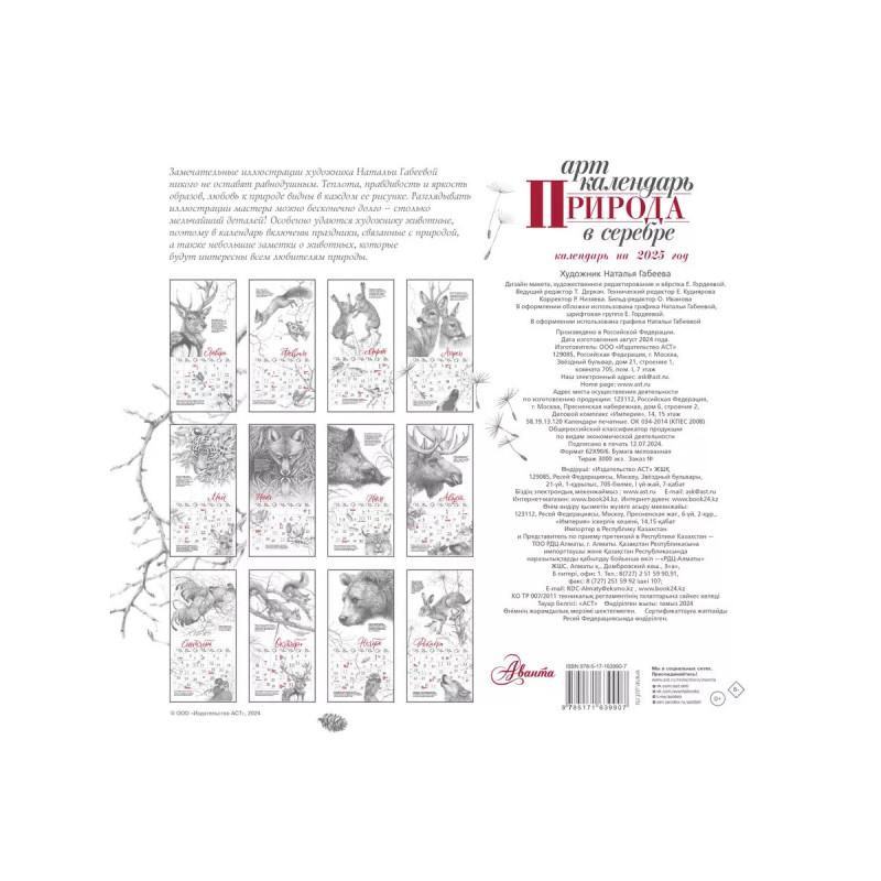 Характеристики Арт-календарь. Природа в серебре 2025 год.