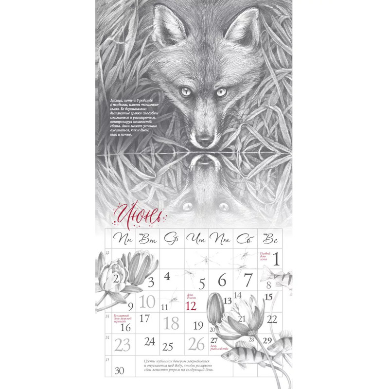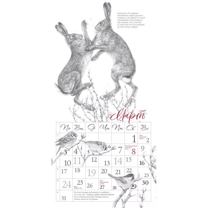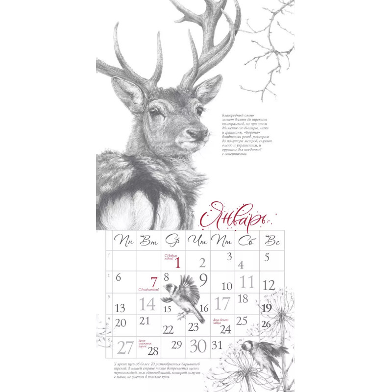 Замечательные иллюстрации художника Натальи Габеевой никого не оставят равнодушным. Теплота, правдивость и яркость образов, любовь к природе видны в каждом ее рисунке. Разглядывать иллюстрации мастера можно бесконечно долго столько мельчайший деталей! Особенно удаются художнику животные, поэтому в календарь включены праздники, связанные с природой, а также небольшие заметки о животных, которые будут интересны всем любителям природы.