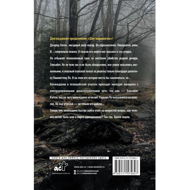 - Бестселлер в жанре криминального триллера. - Продолжение романа Майкла Крэйвена Шоу марионеток. В первой книге харизматичный детектив Вашингтон По расследовал жуткие убийства пожилых мужчин сжигали заживо внутри каменных кругов. На это раз убийца нацелился на самого По. - Первый роман цикла имел огромный успех среди читателей и стал лауреатом престижной премии Ассоциации писателей-криминалистов Золотой кинжал в 2019 году. - Вторая книга захватила меня даже больше, чем первая. Оторваться просто невозможно отзыв на Amazon. - Майкл Крэйвен живет в Карлайле, Великобритания, со своей женой Джоан. В свободное время он гуляет со своим спрингер-спаниелем или проводит время в пабе, а еще его можно встретить на панк-концертах и фестивалях писателей.