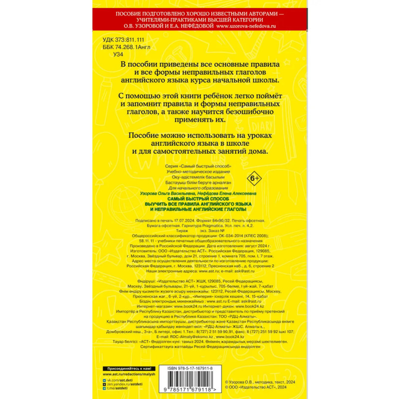 С помощью этой книги ребёнок легко поймёт и запомнит правила английского языка и формы неправильных английских глаголов курса начальной школы, а также научится безошибочно применять их.