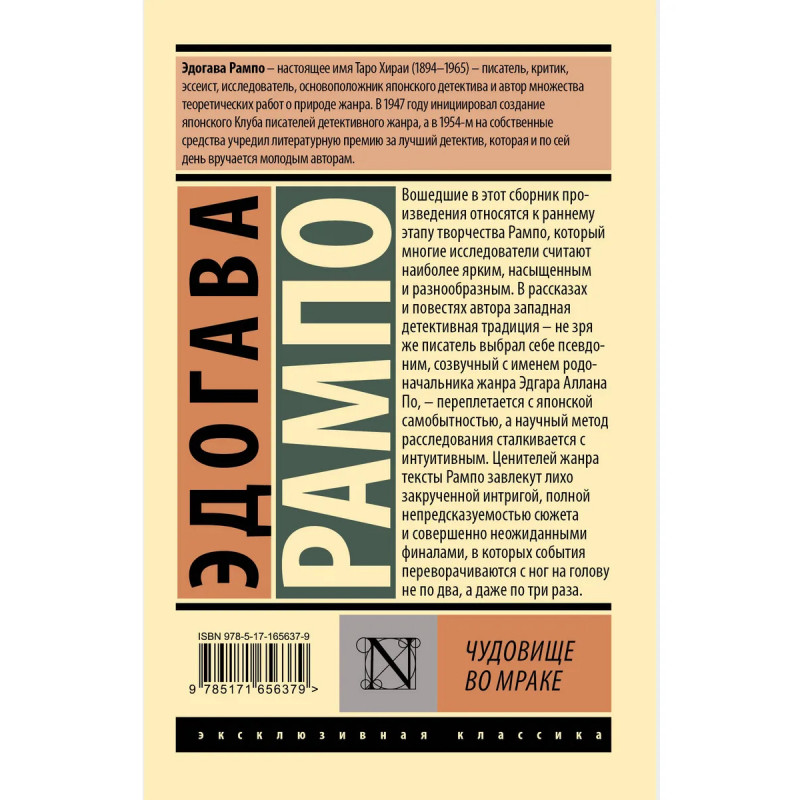 Эдогава Рампо считается родоначальником японского детективного жанра. С детства будучи поклонником Эдгара По, писатель выбрал себе созвучный псевдоним и не зря, ведь в его текстах западная детективная традиция перекликается с японской самобытностью. Рассказы Рампо привлекают читателей лихо закрученной интригой, непредсказуемым сюжетом и совершенно неожиданным финалом.