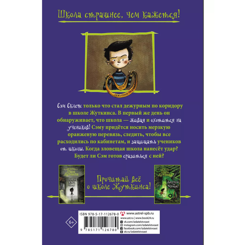 Школа Жуткинса. Опасное дежурство. Простой и живой язык, динамичный сюжет без отступлений, мистическая интрига - книги серии "Школа Жуткинса" созданы специально для младших школьников. Герои этих историй тоже ходят в школу, а значит, вместе с ними читатели посмотрят на знакомую школу под новым углом! Дежурный по коридору Сэм Склепс обнаруживает, что школа живая и нападает на учеников. Как же он сможет её остановить и спасти своих друзей? Сюжет этой книги держит в напряжении до самого конца, но при этом не пугает по-настоящему - то, что нужно, чтобы сохранить активный интерес к самостоятельному чтению!