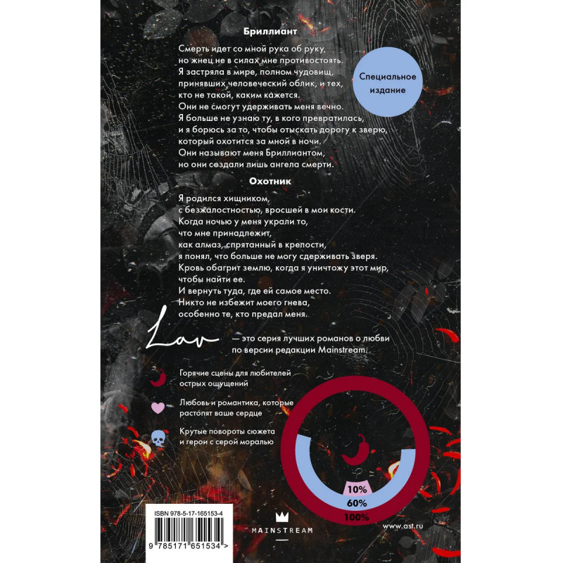 Продолжение скандальной истории о девушке, подпустившей сталкера слишком близко. Мировой бестселлер уже на русском языке! Бриллиант чувствует дыхание смерти, но Костлявой не удастся ее одолеть. Она застряла в реальности, полной монстров, притворяющихся людьми и почти забыла себя но не своего похитителя. Бриллиант знает: он придет за ней. Когда это случится, прольется кровь, ведь он всегда умел получать то, что считает своим по праву. Осталось совсем немного, и она вернется туда, где ей место. Пощады предателям не будет.