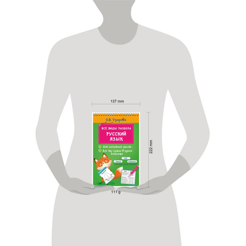 Ольга Васильевна Узорова известный педагог-практик, автор более 6 000 книг для дошкольников и учеников младших классов. О. В. Узорова признана одним из наиболее востребованных в России авторов учебных пособий. Все виды разбора. Русский язык это пособие по русскому языку для учащихся младших классов. В книге представлены все виды разбора слов, в том числе фонетический разбор, разбор по составу, морфологический, синтаксический и орфографический разбор. Пособие выполнено в удобной для ребёнка форме блокнот на спирали. Пособие поможет школьникам подготовиться к контрольным и проверочным работам.