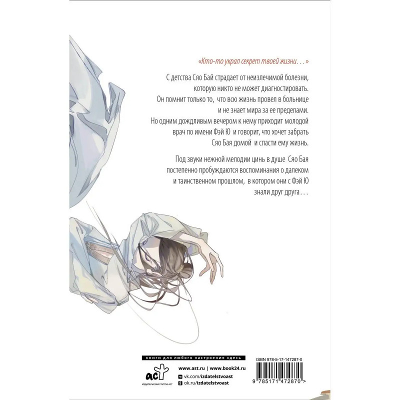 Китайский бестселлер! Трогательная мистическая история о дружбе и доброте. Первая книга многожанрового цикла Белая рыба. Сказания о Бай и Ю! Гу Шу Лауреат литературной премии имени Чэнь Бочуя, призер национального конкурса молодежных новелл Кубок Чжоучжуан. В 214 году вошла вошла в десятку лучших молодежных писателей Китая! В сюжете две временные линии: IV век до н. э. и современность. Души главных героев оказываются связаны сквозь века, а тайны прошлого ведут к древним духам и преданиям. В книге удивительным образом переплелись мистический детектив, историческая сказка и роман-взросления.