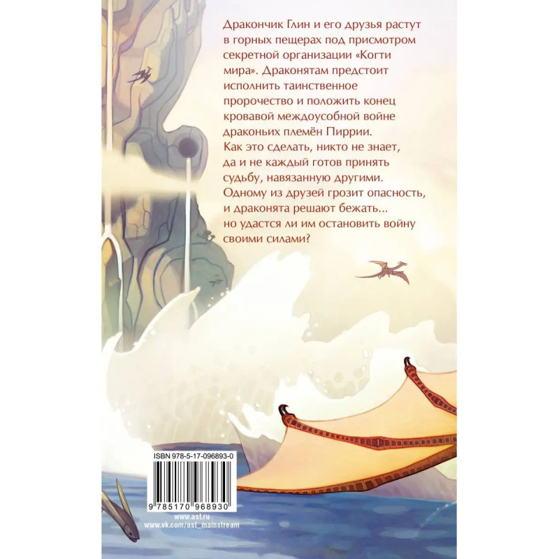 Дракончик Глин и его друзья растут в горных пещерах под присмотром секретной организации "Когти мира". Драконя- там предстоит исполнить таинственное пророчество и поло- жить конец кровавой междоусобной войне драконьих племён Пиррии. Как это сделать, никто не знает, да и не каждый го- тов принять судьбу, навязанную другими. Одному из друзей грозит опасность, и драконята решают бежать но удастся ли им остановить войну своими силами?