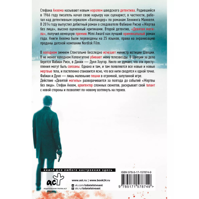 Девятая могила. Вторая книга из цикла о расследованиях Фабиана Риска. Стефан Анхем - один из ведущих мастеров скандинавского нуара. Его книги переведены на 25 языков, а датская компания Nordisk Film уже приобрела права на экранизацию цикла.