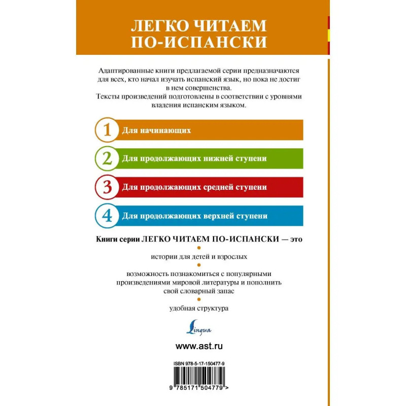 Учить язык гораздо интереснее по живым историям, чем по скучным правилам. Благодаря данному пособию изучение испанского языка будет не только полезным, но и увлекательным. Книга содержит множество забавных историй, в том числе курьезные случаи со знаменитыми людьми. Все тексты адаптированы, сопровождаются комментариями и упражнениями на понимание прочитанного с ответами. В конце книги помещен небольшой испанско-русский словарь. Пособие предназначается для начинающих изучать испанский язык (уровень 1 для начинающих A1-A2). Небольшой формат издания позволяет читать тексты как дома, так и в поездке.