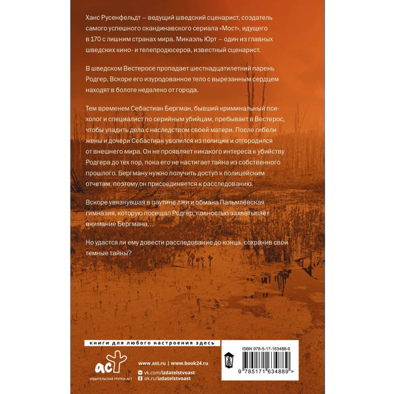 Ханс Русенфельдт ведущий шведский сценарист, создатель самого успешного скандинавского сериала "Мост", идущего в 170 с лишним странах мира. Микаэль Юрт один из главных шведских кино- и телепродюсеров, известный сценарист. В шведском Вестеросе пропадает шестнадцатилетний парень Родгер. Вскоре его изуродованное тело с вырезанным сердцем находят в болоте недалеко от города. Тем временем Себастиан Бергман, бывший криминальный психолог и специалист по серийным убийцам, пребывает в Вестерос, чтобы уладить дела с наследством своей матери. После гибели жены и дочери Себастиан уволился из полиции и отгородился от внешнего мира. Он не проявляет никакого интереса к убийству Родгера до тех пор, пока его не настигает тайна из собственного прошлого. Бергману нужно получить доступ к полицейским отчетам, поэтому он присоединяется к расследованию. Вскоре увязнувшая в паутине лжи и обмана Пальмлёвская гимназия, которую посещал Родгер, полностью захватывает внимание Бергмана