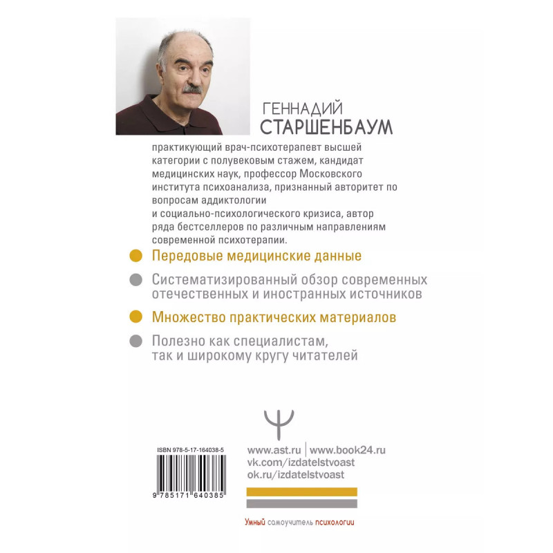 Приходилось ли вам ощущать сильное эмоциональное истощение? Хроническая усталость, отсутствие мотивации, снижение работоспособности и постоянный стресс Знакомо? Так проявляется синдром профессионального выгорания (СПВ). С ним нередко сталкиваются медики, психологи, преподаватели, социальные работники, государственные служащие и работники правоохранительных органов, а также представители многих других, в том числе творческих профессий. Автор книги Г. В. Старшенбаум, врач-психотерапевт с полувековым стажем работы, подробно расскажет о симптомах и видах профессионального выгорания, а также о способах его профилактики и преодоления. Подробные тесты помогут вам диагностировать профессиональное выгорание у себя, своих близких, пациентов или клиентов. А специальные упражнения станут хорошим средством профилактики выгорания и совладания с ним. Автор затрагивает и такие важные темы, как трудоголизм, перфекционизм, нарциссизм, стресс, социально-психологический кризис и т. д.