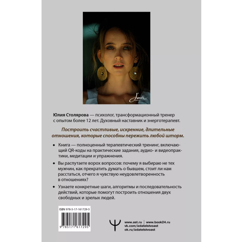 Что такое любовь? Страсть, лёгкость, когда перехватывает дыхание и появляются бабочки в животе. Когда человек становится всем миром, а всё остальное престаёт иметь значение. А что если любовь это совсем другое? Эта книга ваш ориентир в поиске осознанной любви, в которой нет места американским горкам из полярных эмоций от эйфории до упадка, от открыленности до бездны отчаяния. Зато есть место доверию, уважению и подлинной близости. Вы узнаете: - как в современном мире меняются ориентиры в отношениях и в браке; - как в эпоху искусственности полюбить свое природное я и позаботиться о нем; - как забыть того самого бывшего и сказать нет старым сценариям; - как впустить в свою жизнь нового мужчину и построить с ним крепкий союз; - как избавиться от чувства неудовлетворённости в нынешних отношениях. Остаться или уйти? Это уютное, глубокое и мудрое рассуждение о природе любви, а также полноценный тренинг.