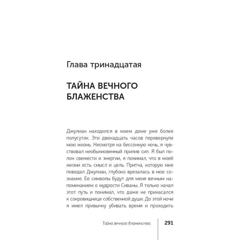 Что такое подлинный успех, и как его достичь? Можно ли обрести счастье, которое не зависит ни от карьерного роста, ни от мировых кризисов? Как избавиться от бесконечной заботы о завтрашнем дне и начать получать удовольствие от каждого прожитого дня? Существуют ли простые рецепты, позволяющие обрести духовные дары, не отказываясь от привычного комфорта? Как развить сверхспособности и подчинить себе судьбу? И, пожалуй, самое главное: как найти свое призвание и стать самим собой? Ответ в этой книге, ставшей бестселлером во многих странах мира. Вместе с бывшим миллионером Джулианом Мэнтлом Робин Шарма предлагает читателю совершить удивительное путешествие в Сивану страну, где исполняются мечты!