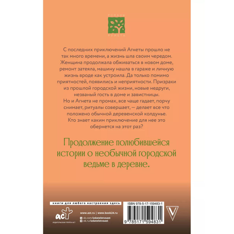Ведьма Агнета. Практическая магия и нечисть по соседству. С последних приключений Агнеты прошло не так много времени, а жизнь шла своим чередом. Женщина продолжала обживаться в новом доме, ремонт затеяла, машину нашла в гараже и личную жизнь вроде как устроила. Да только помимо приятностей, появились и неприятности. Призраки из прошлой городской жизни, новые недруги, незваный гость в доме и завистницы. Но и Агнета не промах, все чаще гадает, порчу снимает, ритуалы совершает, - делает все что положено обычной деревенской колдунье. Кто знает каким приключение для нее это обернется на этот раз? Продолжение полюбившейся истории о необычной городской ведьме в деревне.